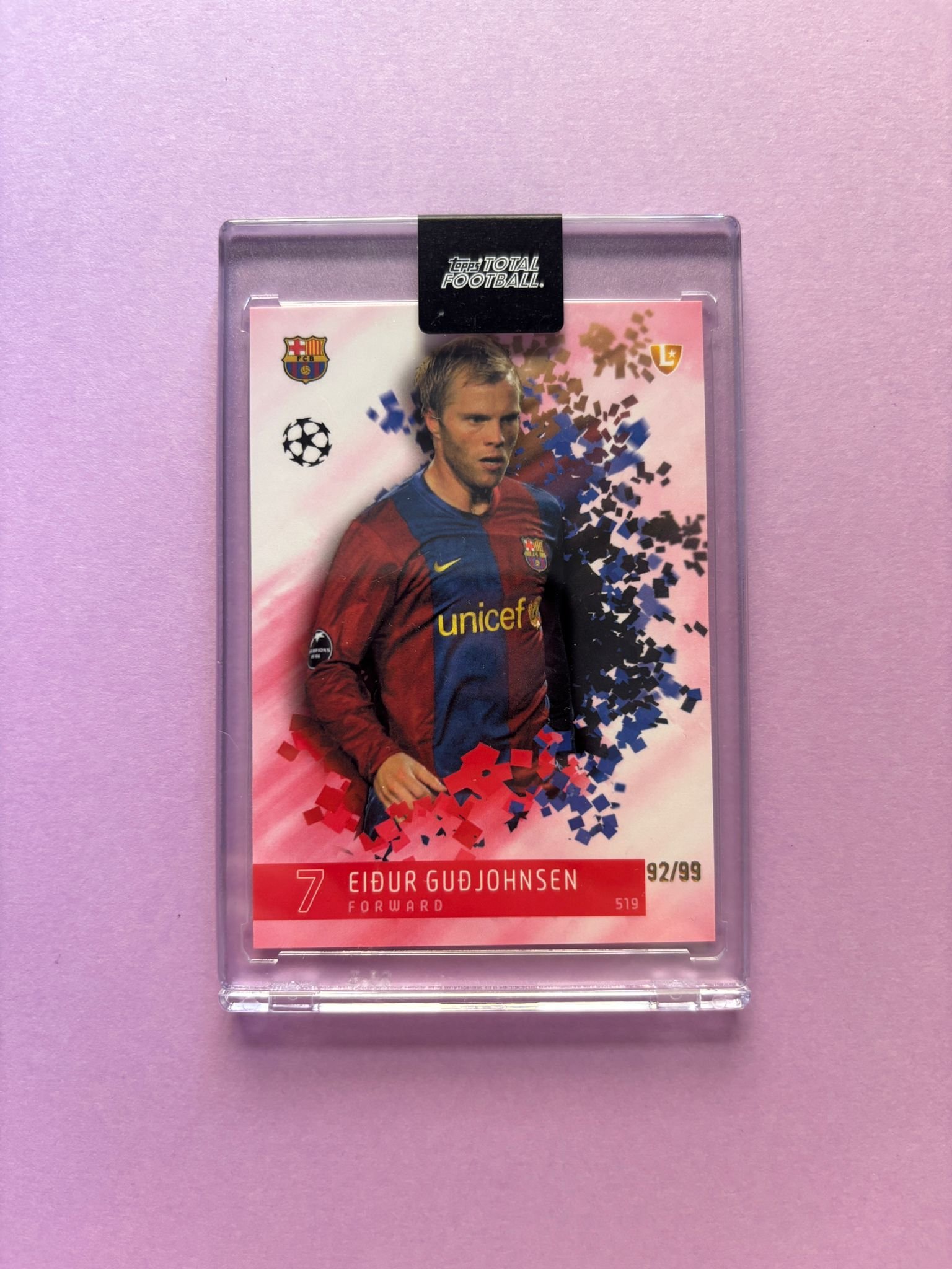 Skip to contentCarta de Topps Total Football en su Metacrilato en perfecto estado, del jugador Eiður Guðjohnsen en el Barcelona en la temporada 2024/2025 en su versión LEGENDS con la numeración 94/99.