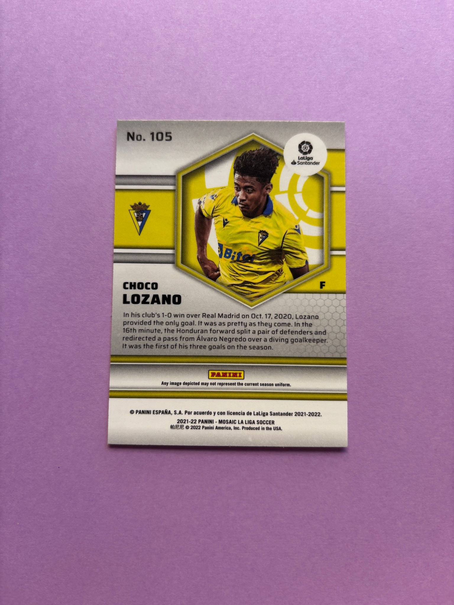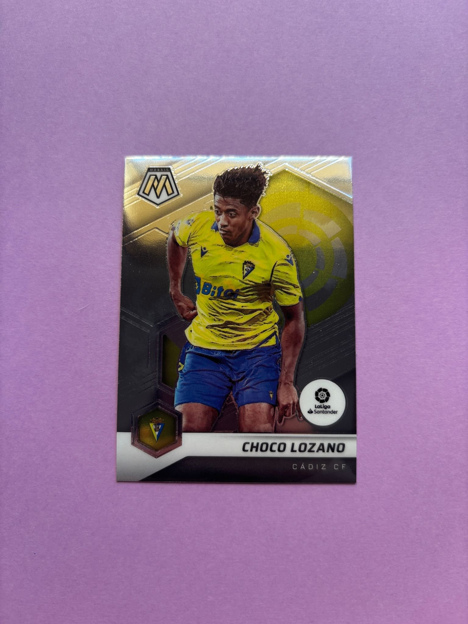 Carta de Panini Mosaic La Liga en su Sleeve en perfecto estado, del jugador Choco Lozano en el Cádiz CF en la temporada 2020/2021 en su versión Base.