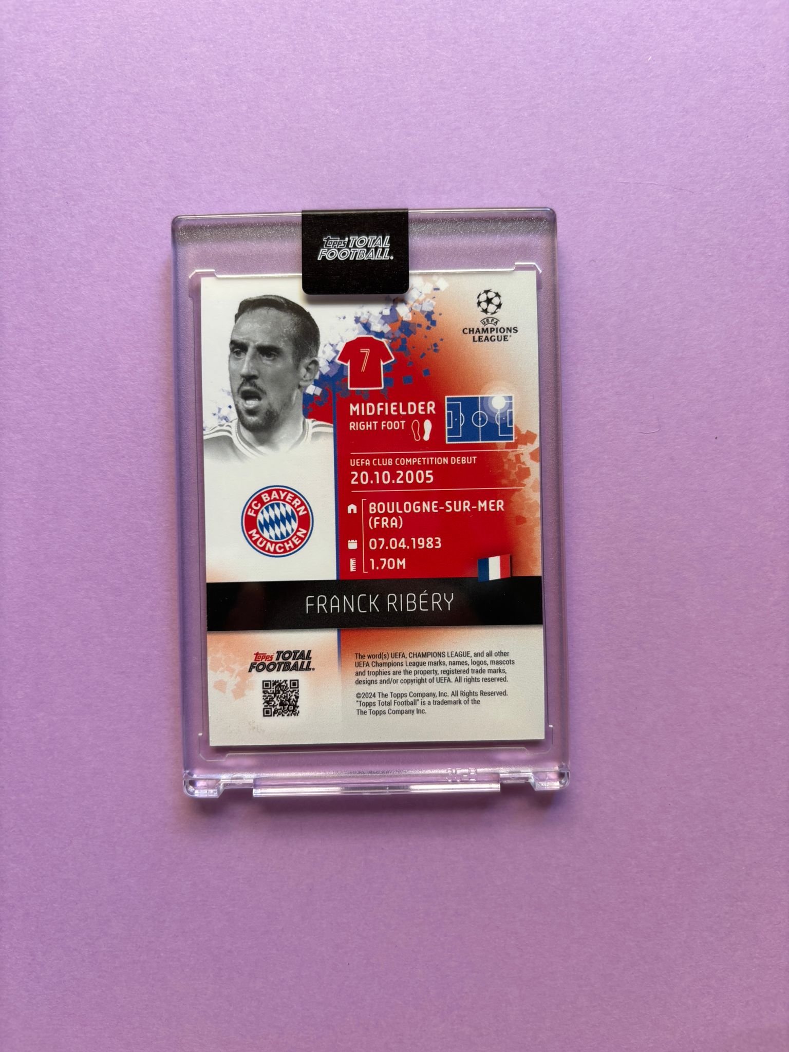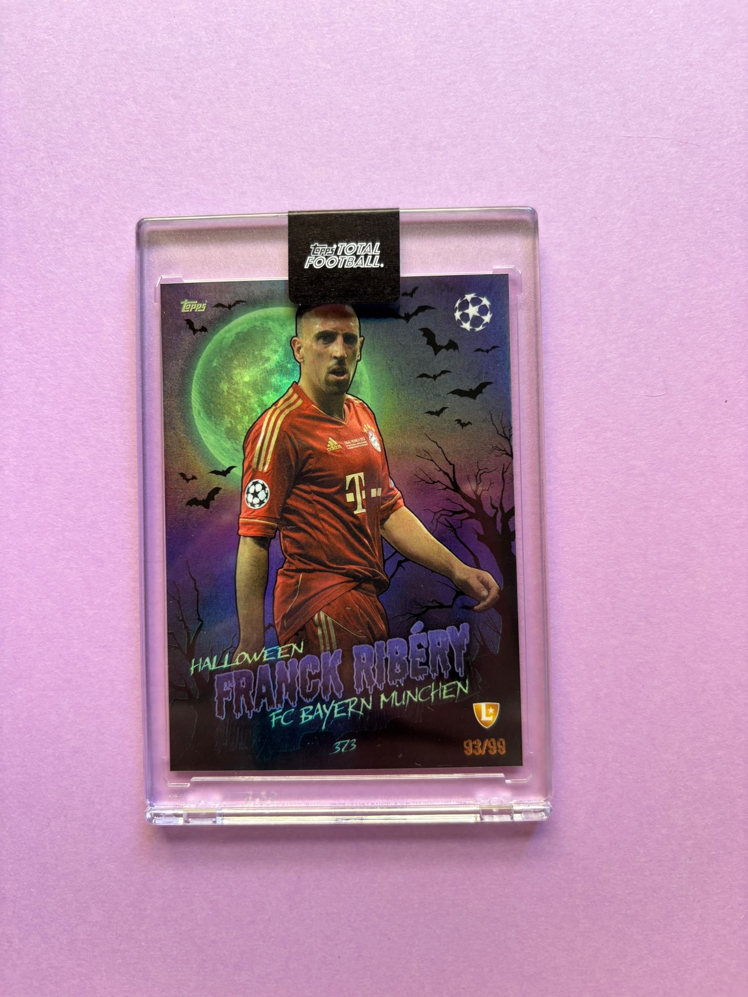Carta de Topps Total Football en su Metacrilato en perfecto estado, del jugador Franck Ribéry en el Bayern Múnich en la temporada 2024/2025 en su versión HALLOWEEN con la numeración 93/99.