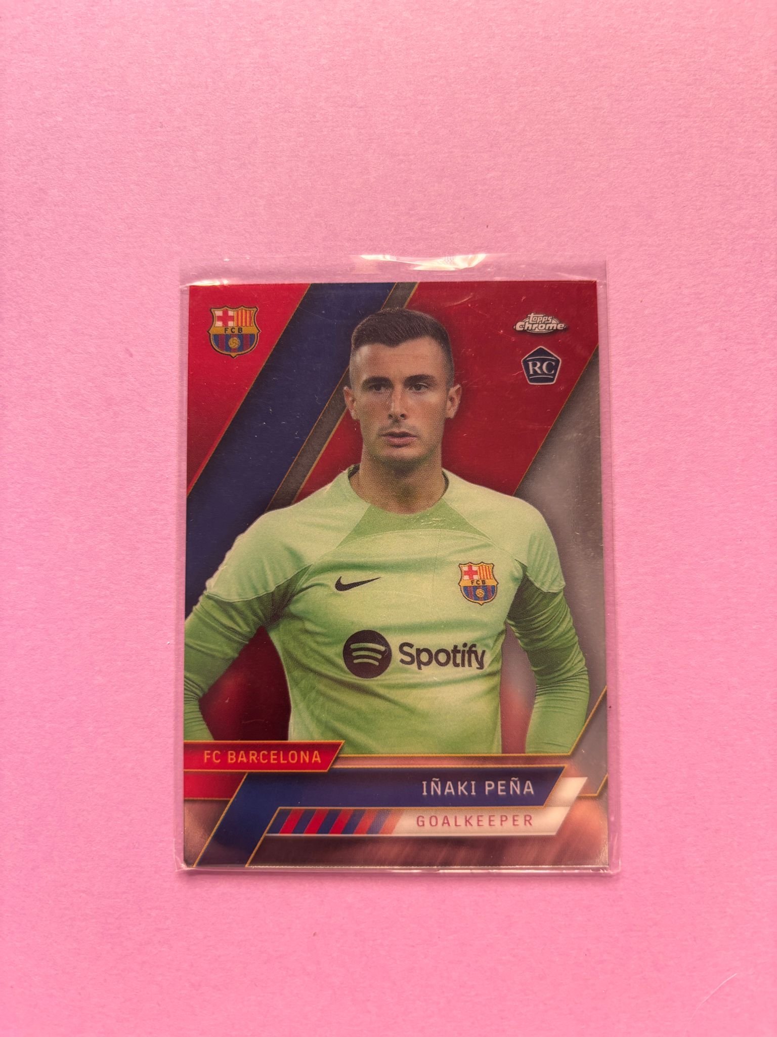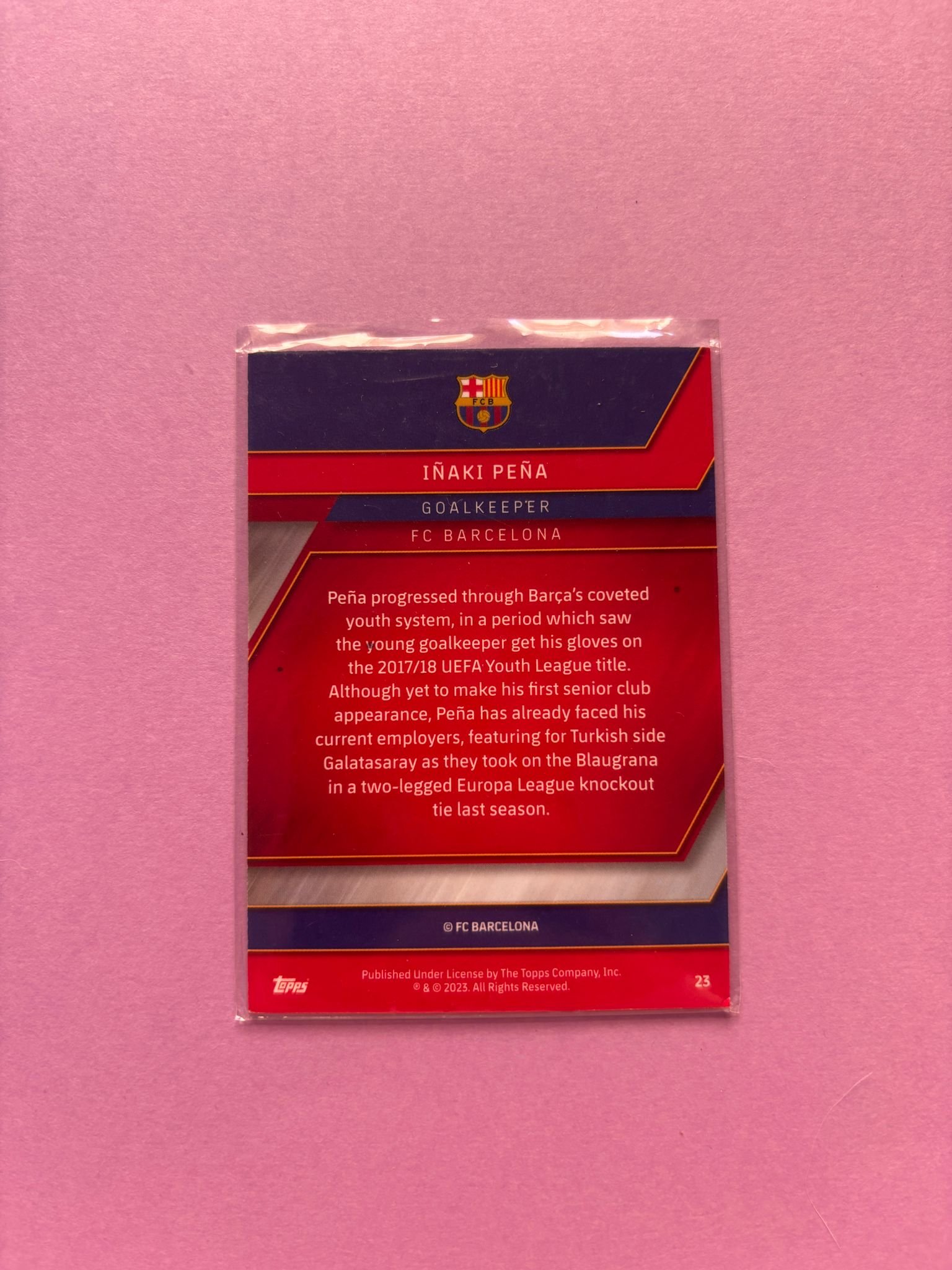 Carta de Topps FC Barcelona Official Team Set en su Metacrilato en perfecto estado, del jugador Iñaki Peña en el Barcelona en la temporada 2022/2023 en su versión básica.