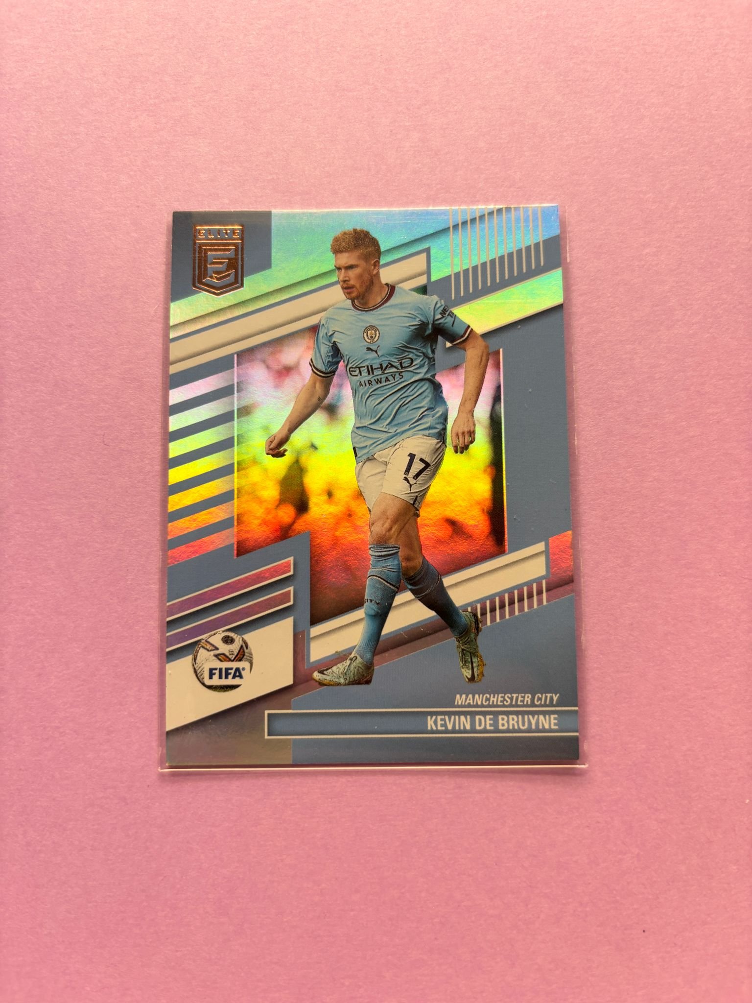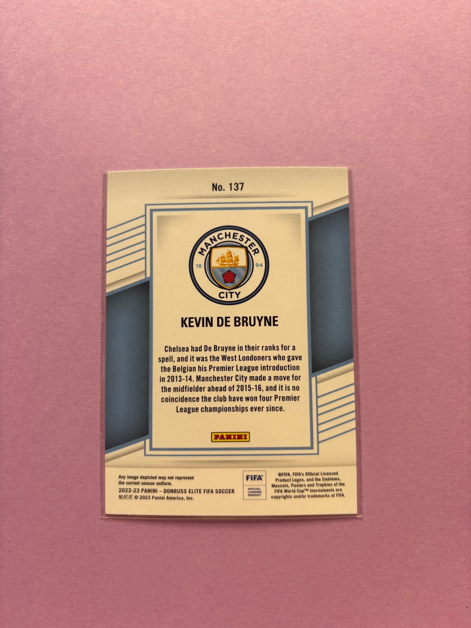 Carta de Panini Donruss Elite FIFA en su Sleeve en perfecto estado, del jugador Kevin De Bruyne en el Manchester City en la temporada 2022/2023 en su edición especial Base.
